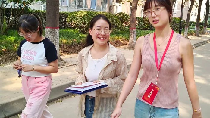 迎新志愿者们早早地等候在北门、南门以及迎新报到点等每一处新生可能需要帮助的地方:帮忙提随身行李,指引报到的方向,耐心解答各种疑问。在报到现场,志愿者们耐心地引导新生完成各项手续,细心地讲解注意事项。他们的耐心和细心,将“以家人之名”向新生们传递温暖与热情。